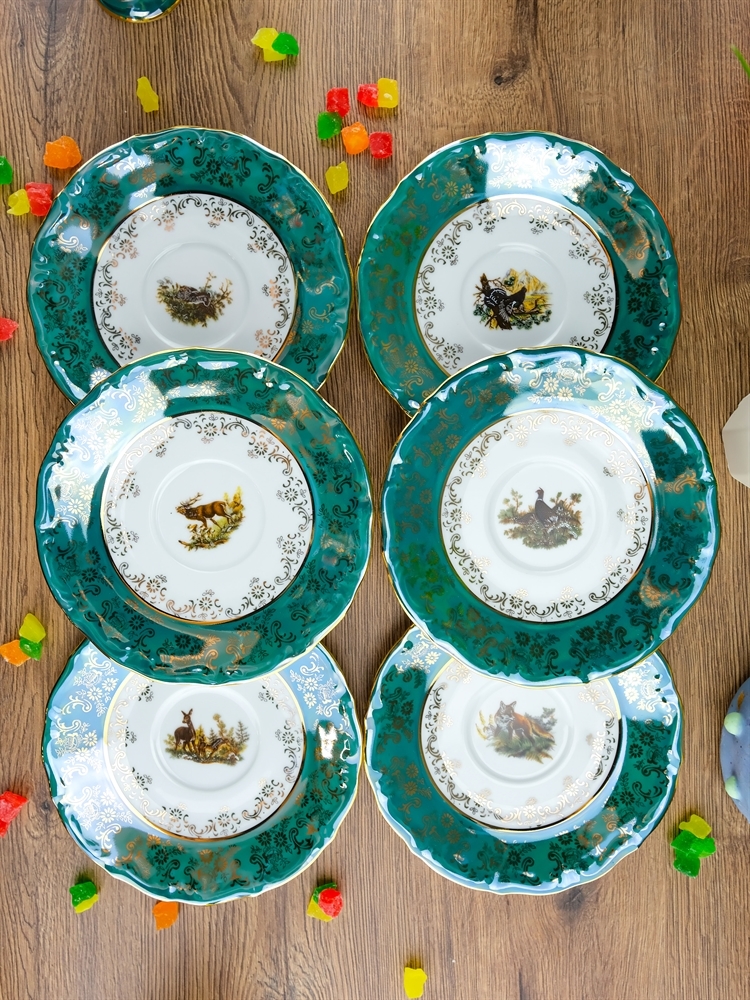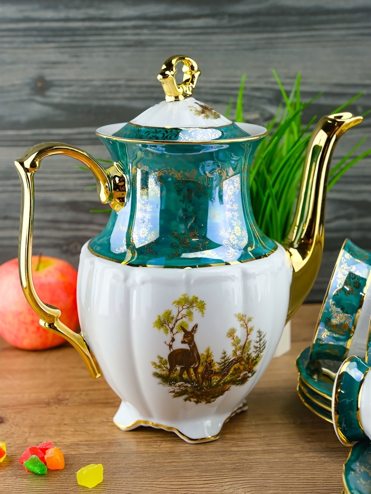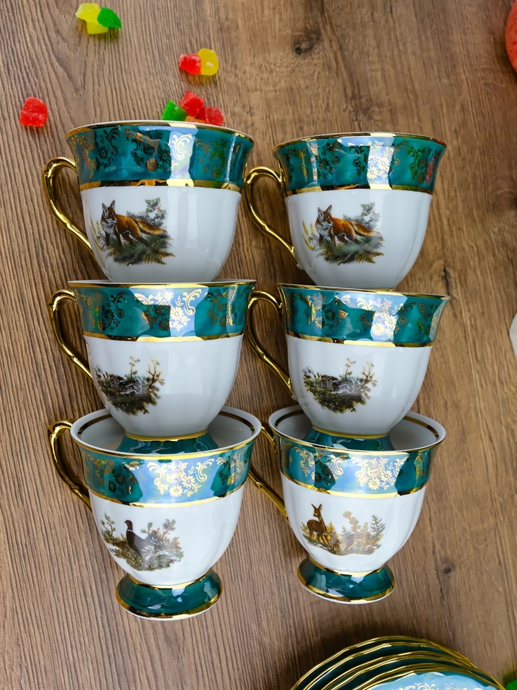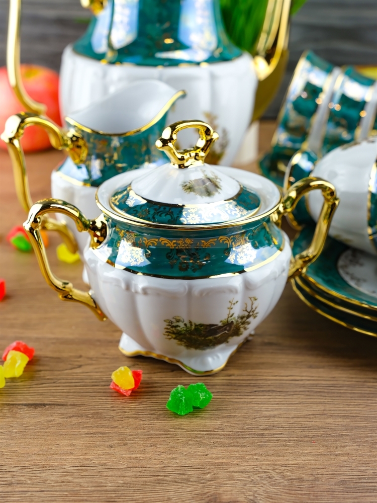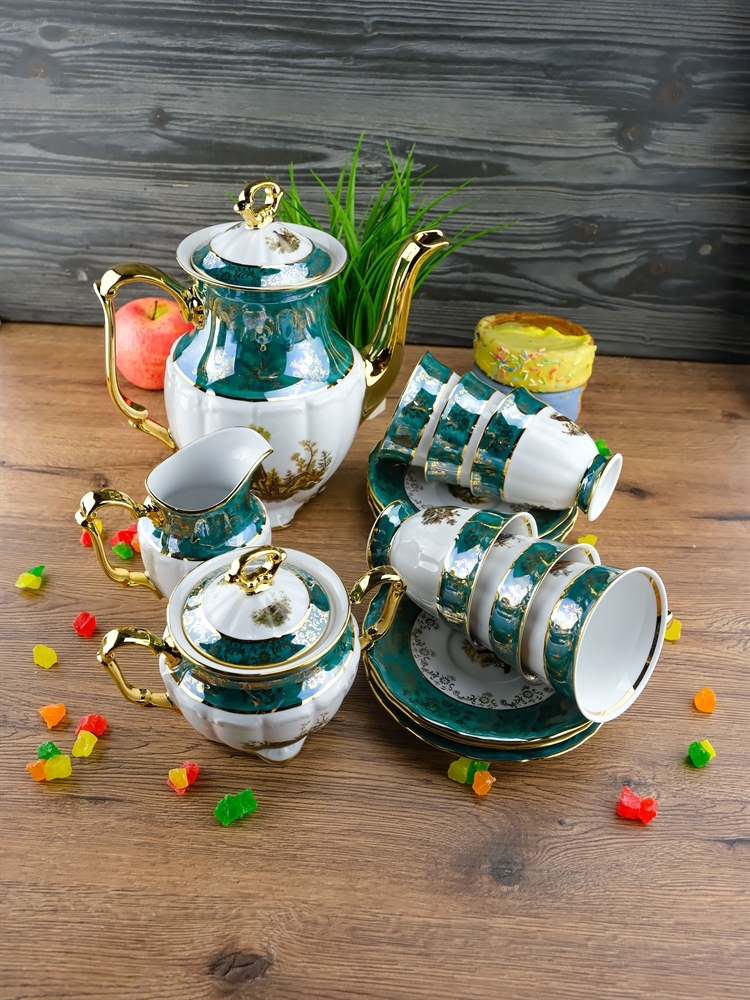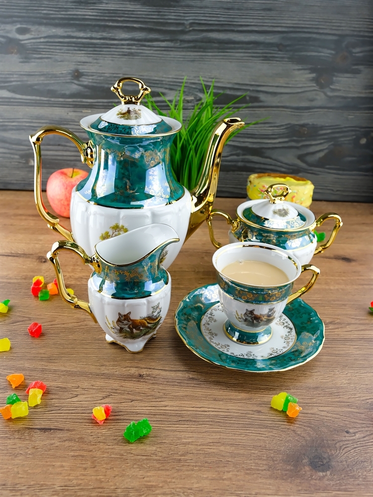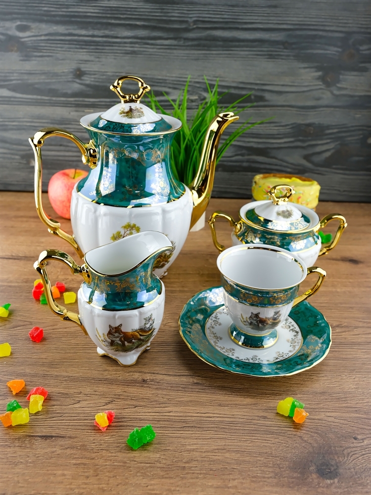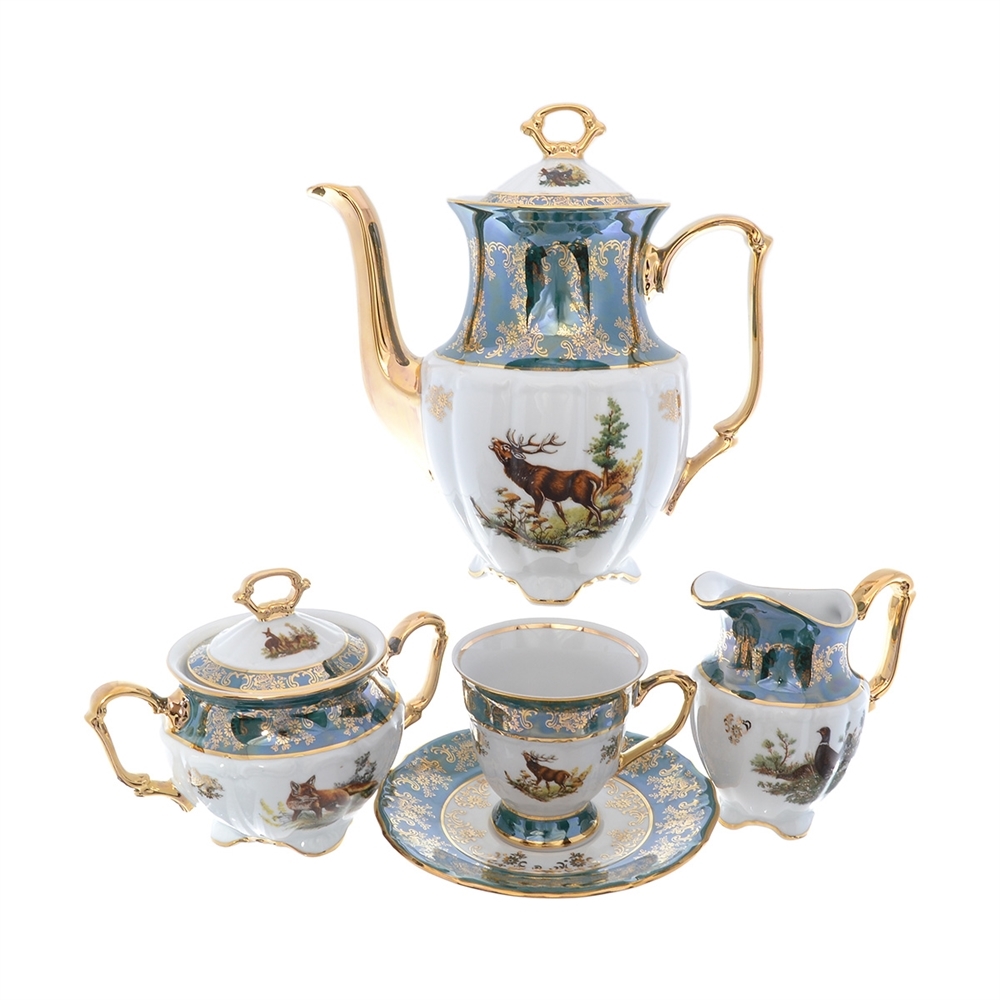 Кофейный сервиз на 6 персон Охота зеленая, серия Мария Тереза, 15 предметов, Repast