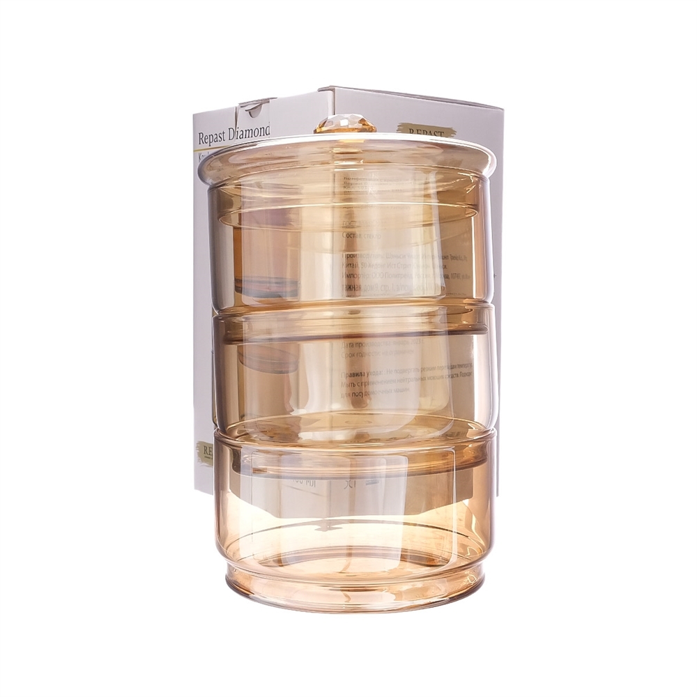 Конфетница с крышкой 3-х ярусная Diamond 3*400 мл, цвет медовый, Repast, фото