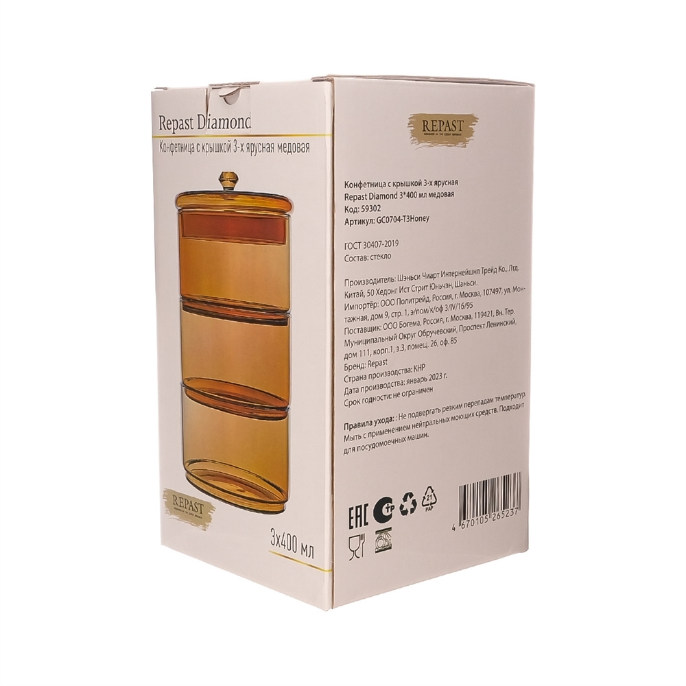 Конфетница с крышкой 3-х ярусная Diamond 3*400 мл, цвет медовый, Repast