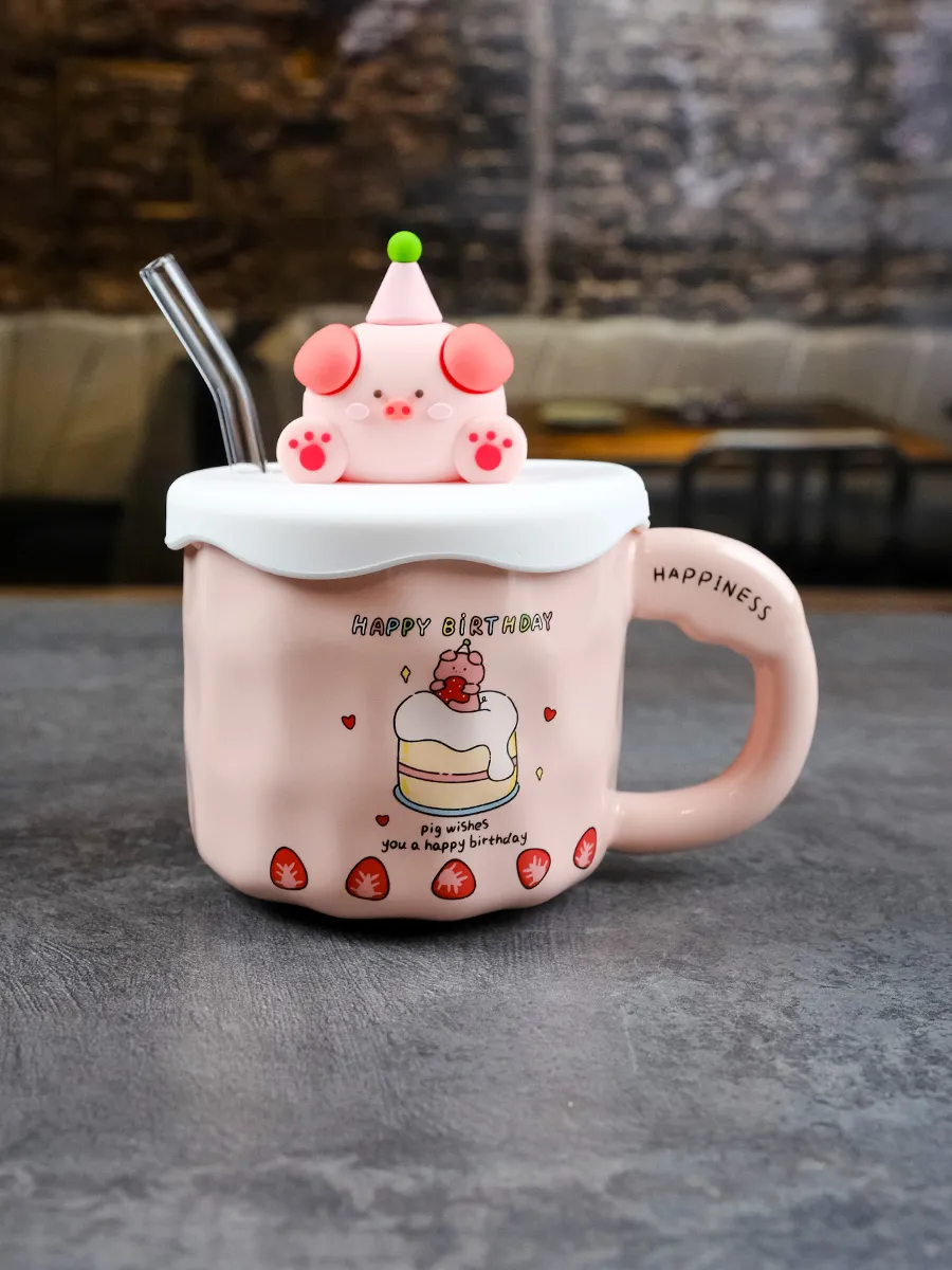Кружка с крышкой и трубочкой Поросенок 380 мл, Repast