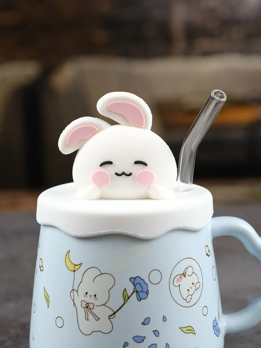 Кружка с крышкой и трубочкой Зайка 420 мл, цвет голубой, Repast