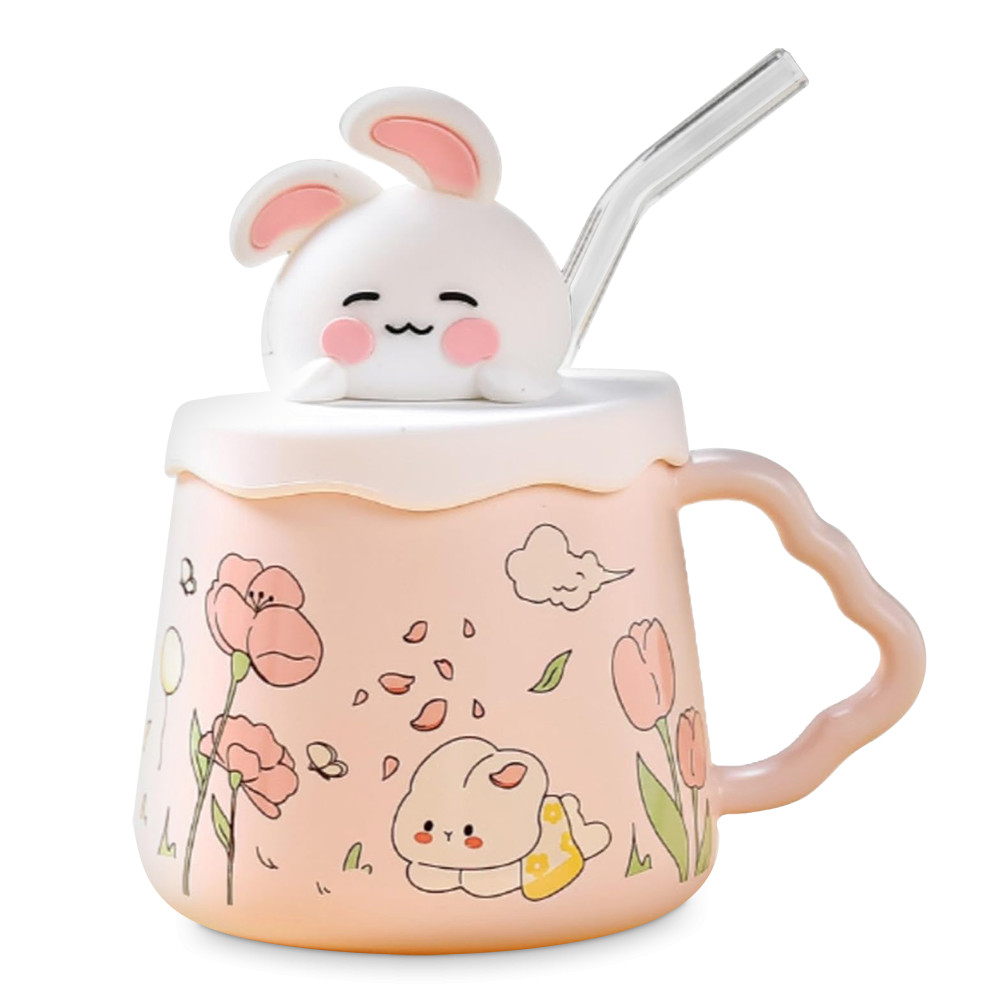 Кружка с крышкой и трубочкой Зайка 420 мл, цвет розовый, Repast