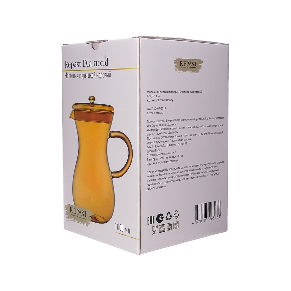 Молочник с крышкой Diamond 1 л, цвет медовый, Repast, фото