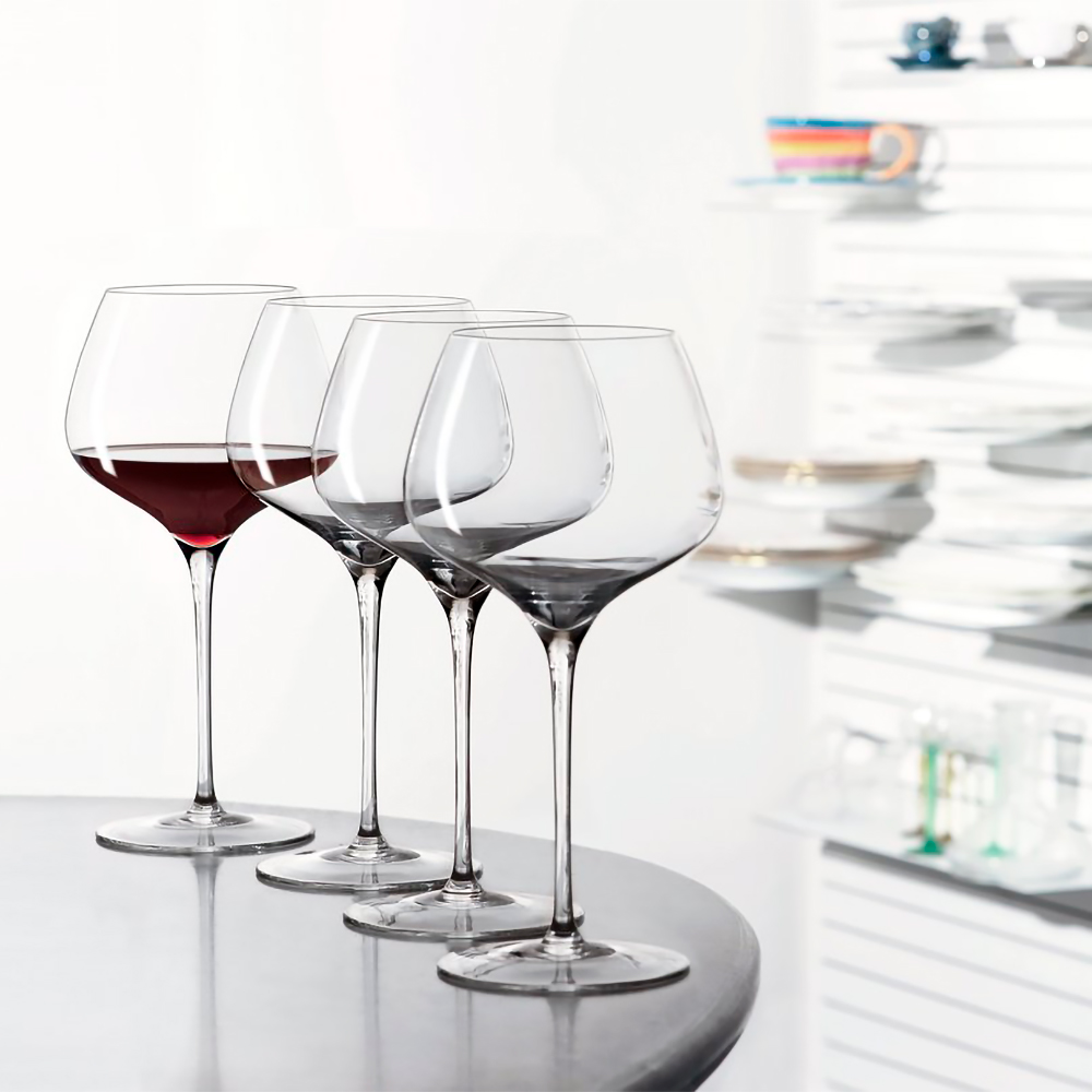 Бокал Burgundy создан для подачи лёгких красных вин с высокой кислотностью и умеренными танинами. Его тюльпановидная форма чаши раскрывает фруктовые ноты аромата и смягчает кислотность, подчеркивая богатый, насыщенный вкус вина.