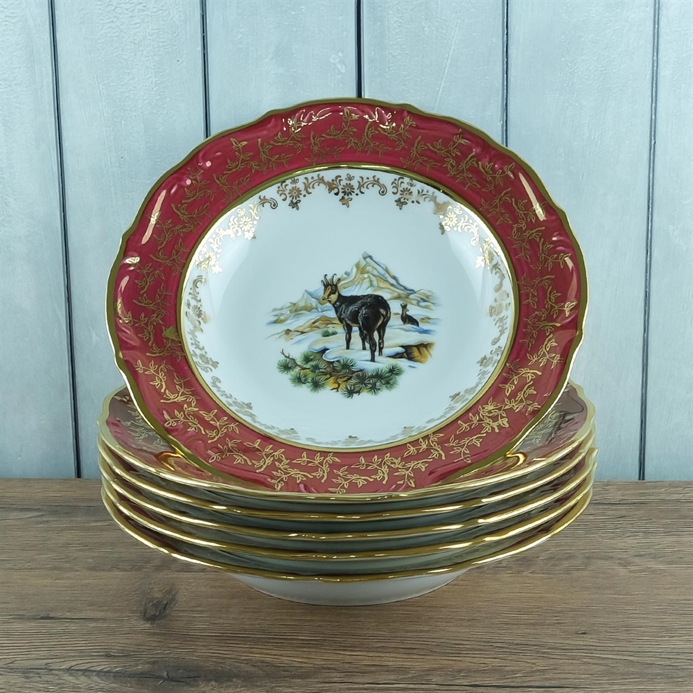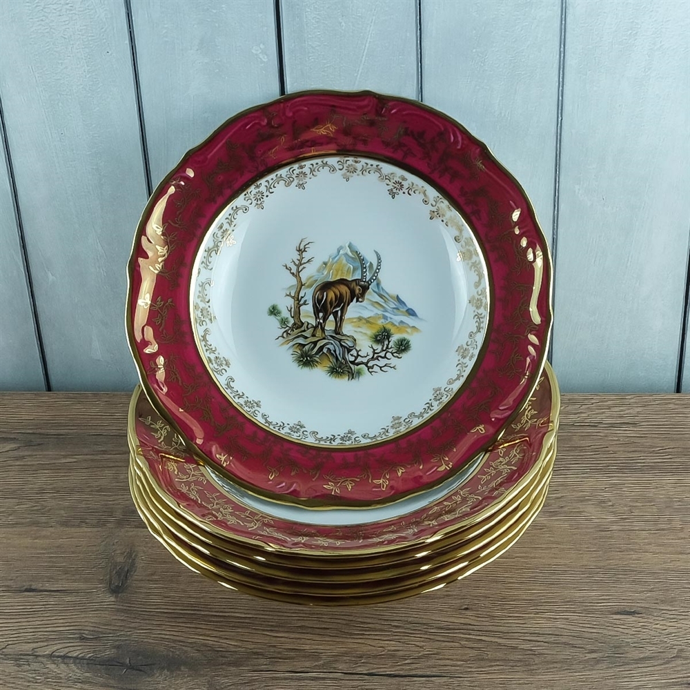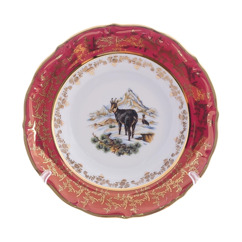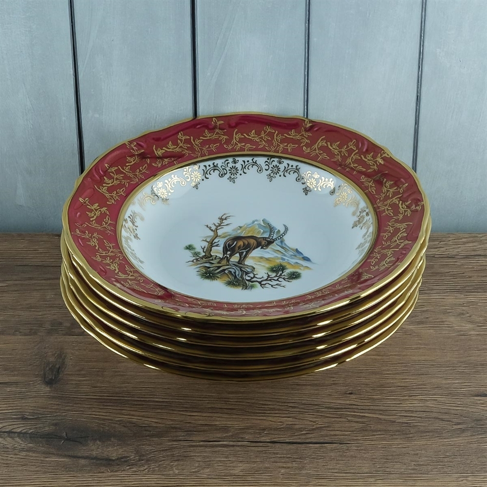 Набор из 6-ти глубоких тарелок Охота красная 23 см, серия Мария Тереза, Repast