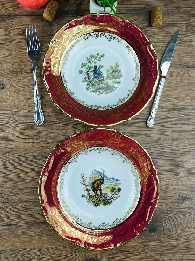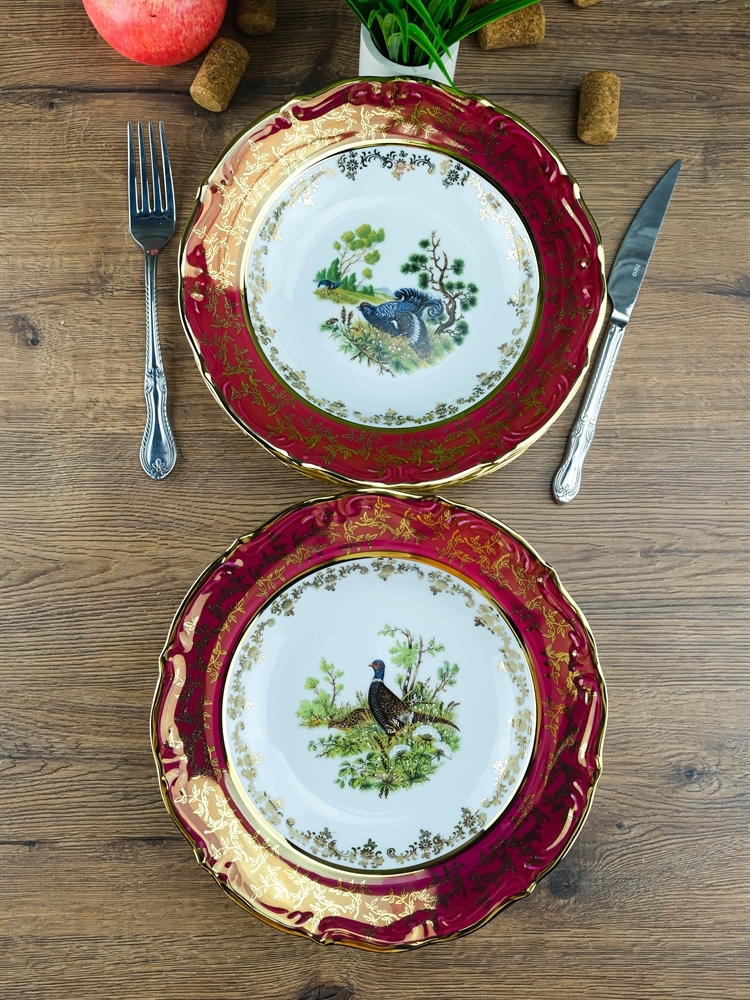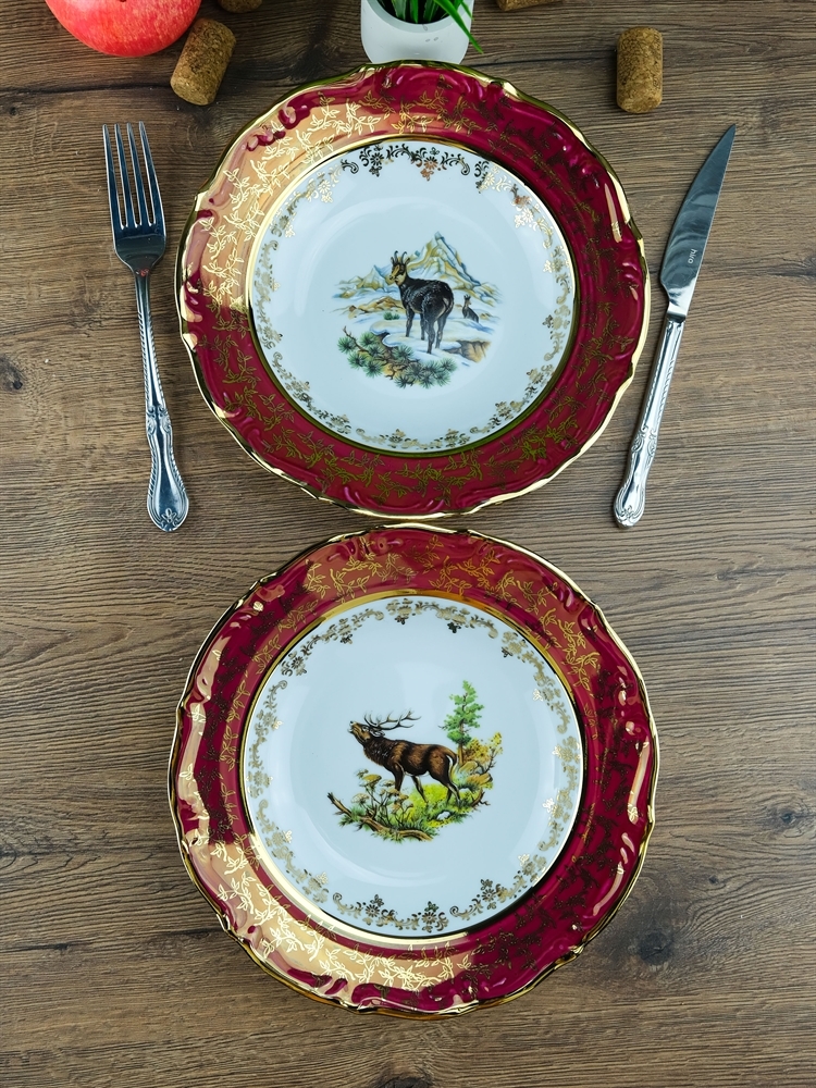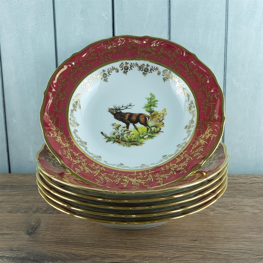 Набор из 6-ти глубоких тарелок Охота красная 23 см, серия Мария Тереза, Repast