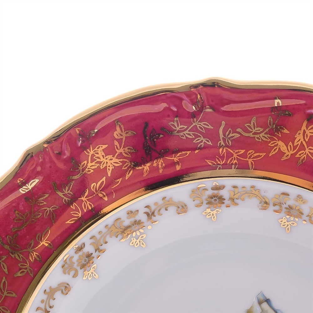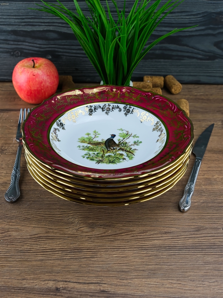 Набор из 6-ти глубоких тарелок Охота красная 23 см, серия Мария Тереза, Repast, фото