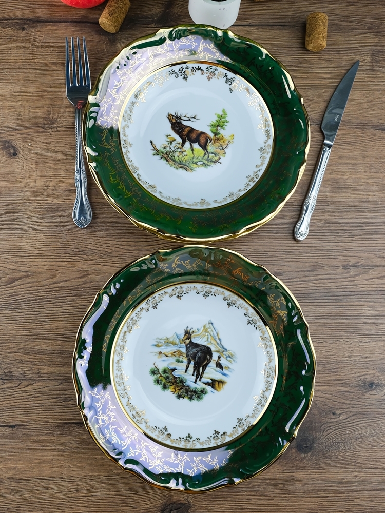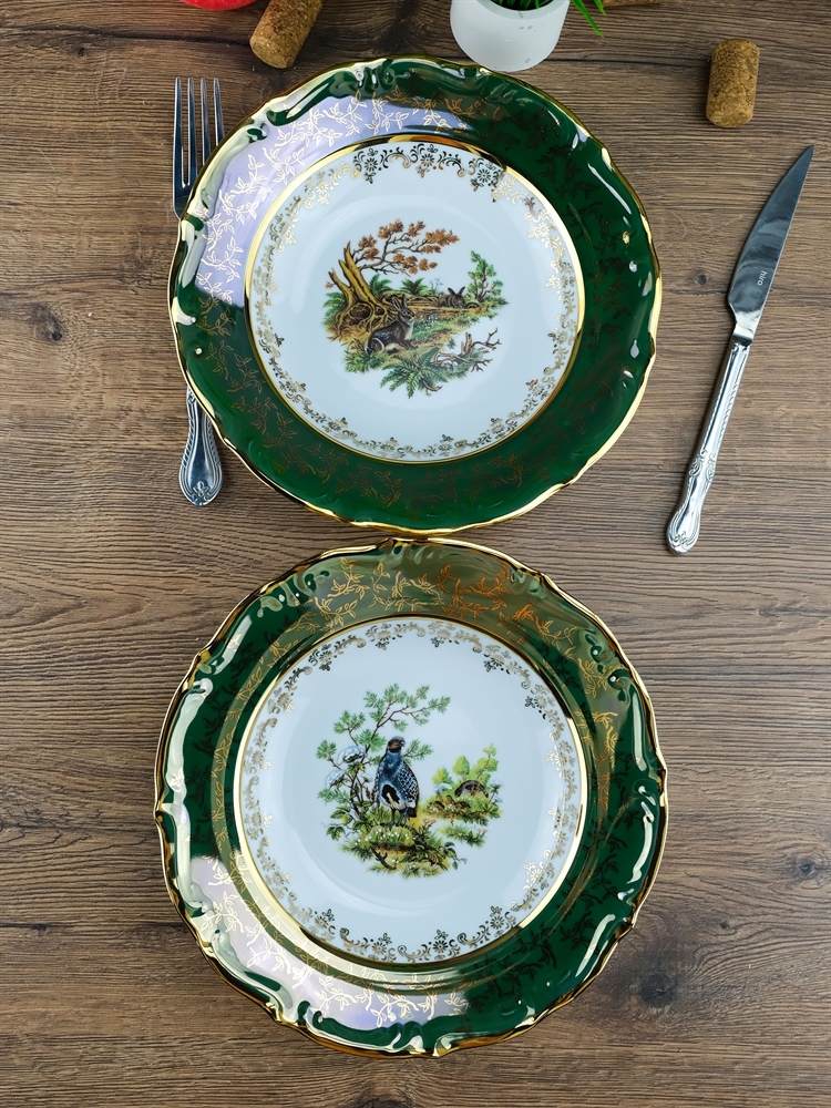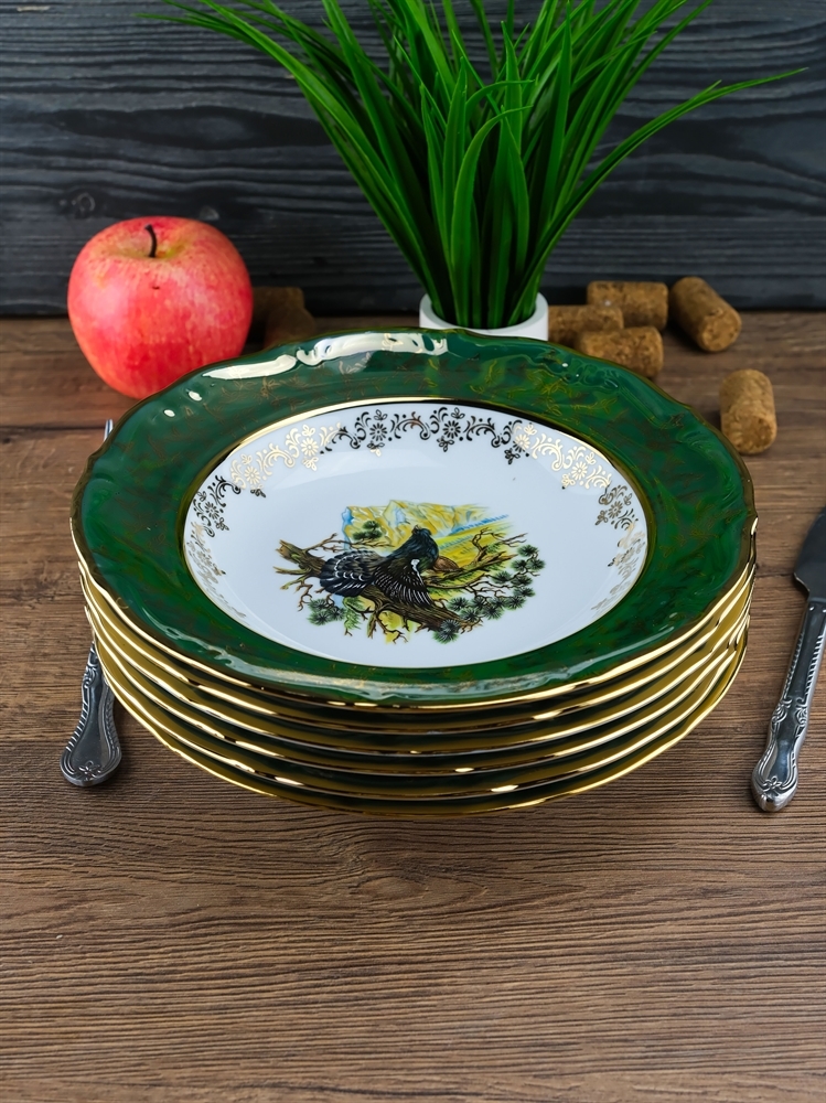 Набор из 6-ти глубоких тарелок Охота зеленая 22,5 см, серия Мария Тереза, Repast