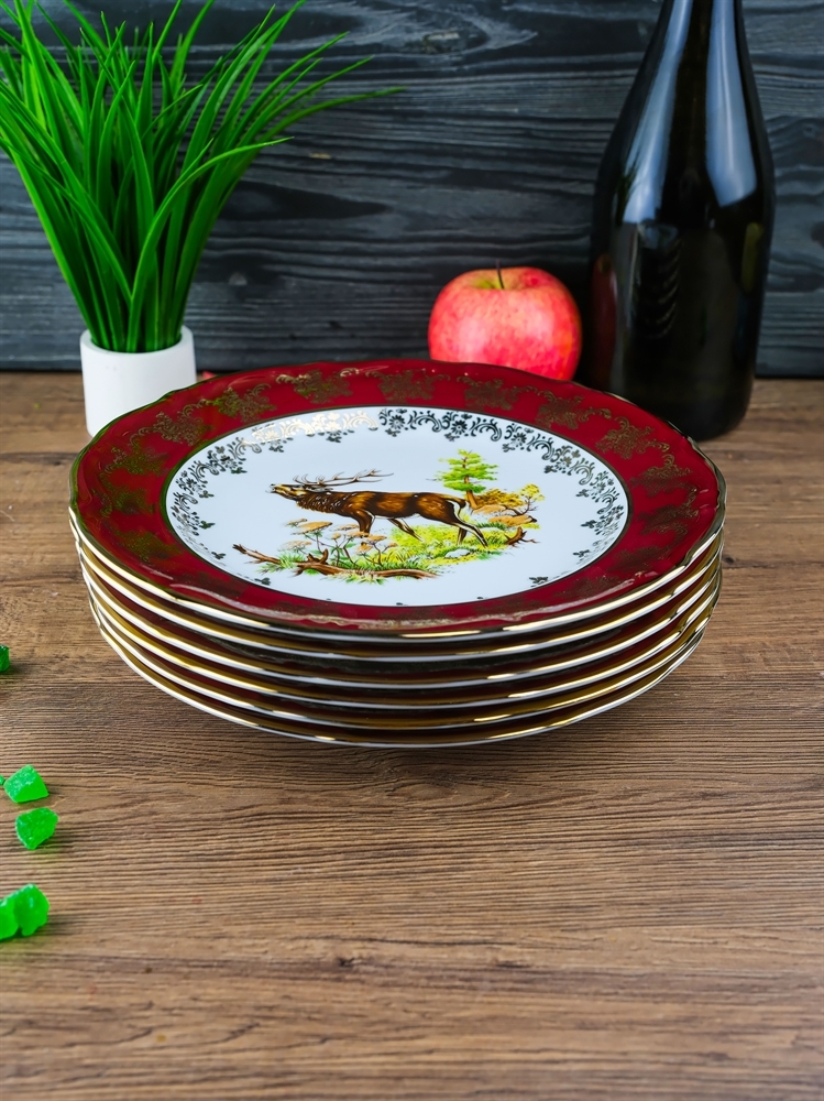 Набор из 6-ти тарелок Охота красная 25 см, серия Мария Тереза, Repast