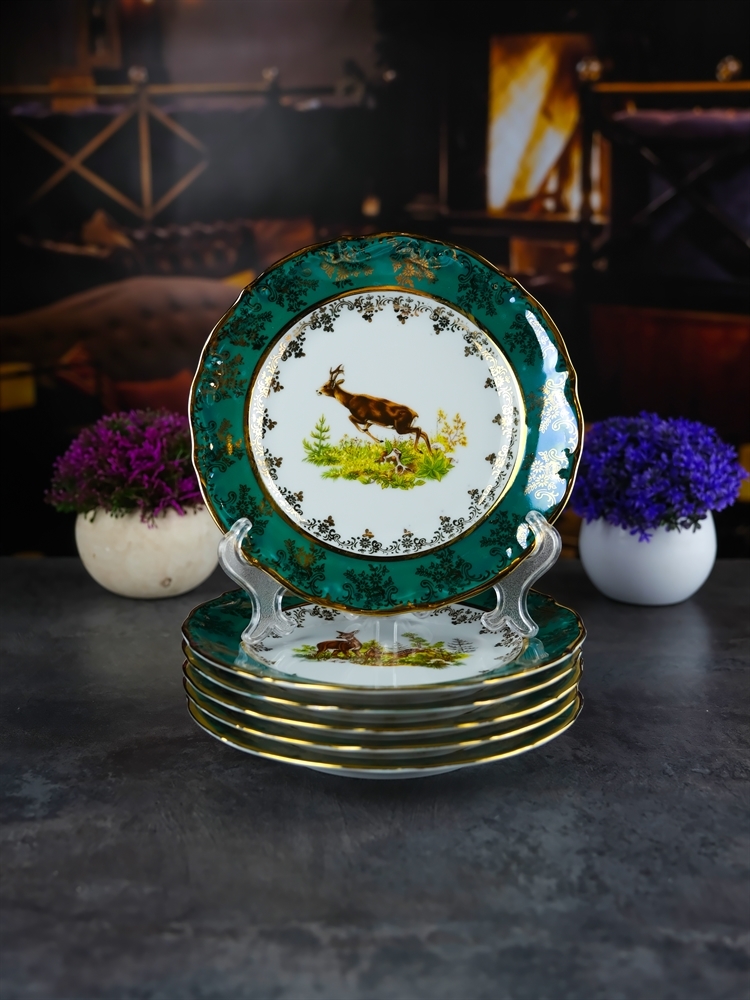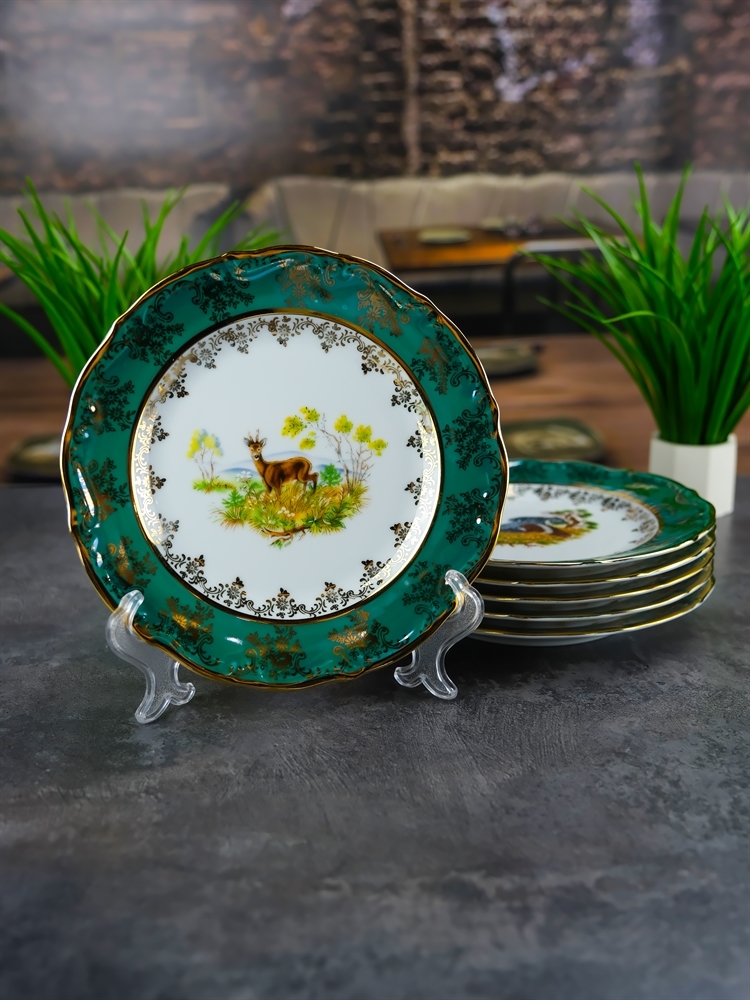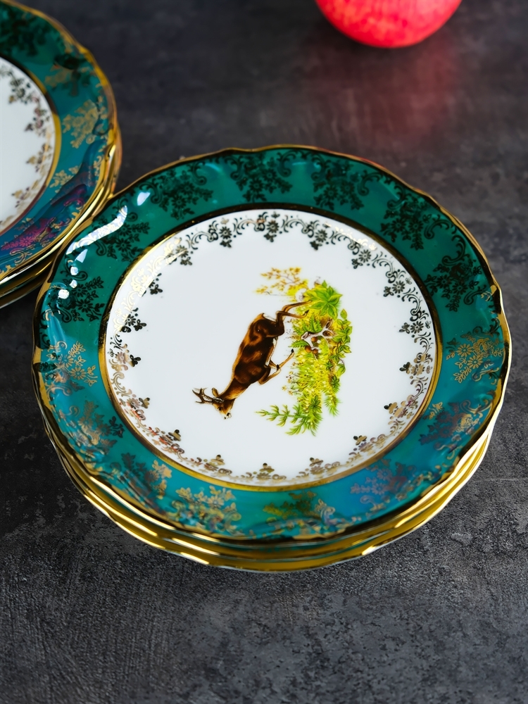 Набор из 6-ти тарелок Охота зеленая 19 см, серия Мария Тереза, Repast