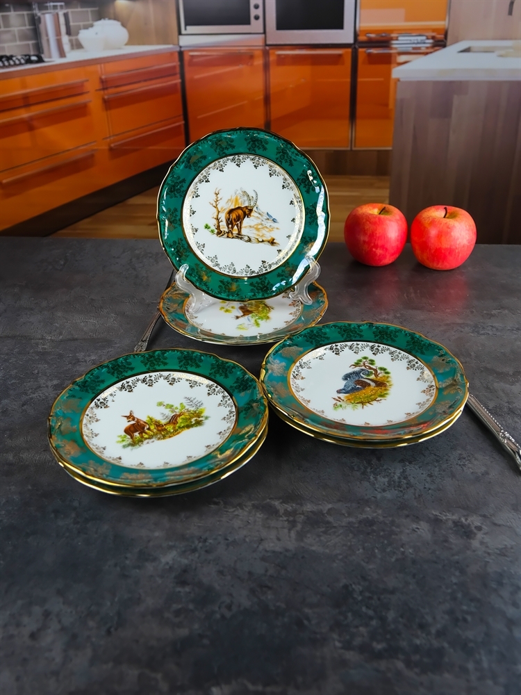 Набор из 6-ти тарелок Охота зеленая 19 см, серия Мария Тереза, Repast, фото