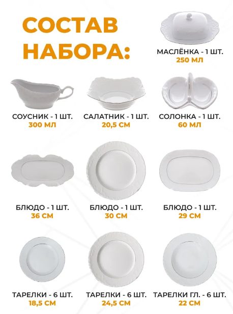Столовый набор на 6 персон Rococo с платиновой полосой, 25 предметов, Repast